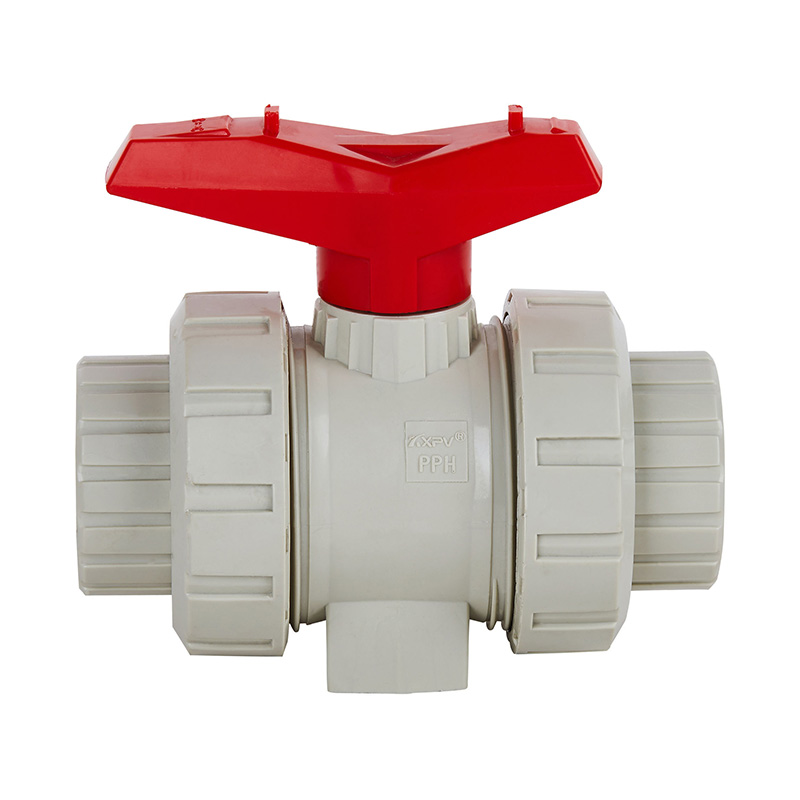 Jordgul Anpassad storlek Medeltemperatur PPH True Union Socket Kulventil, Manuell Hållbar Plast Industriell Vattenventil