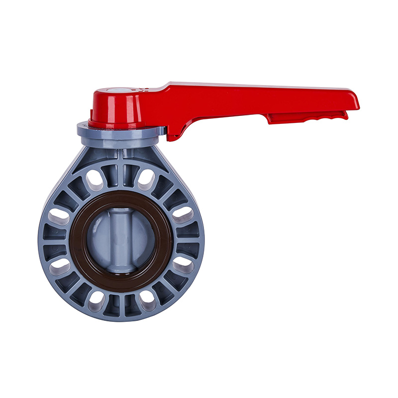 Anpassad helt ny PVC-C handpak med slät stam DN15–200 vridspjällsventil, grå, DIN, JIS, ANSI Standard, 4-tums flänsad plastventil ANSI Standard