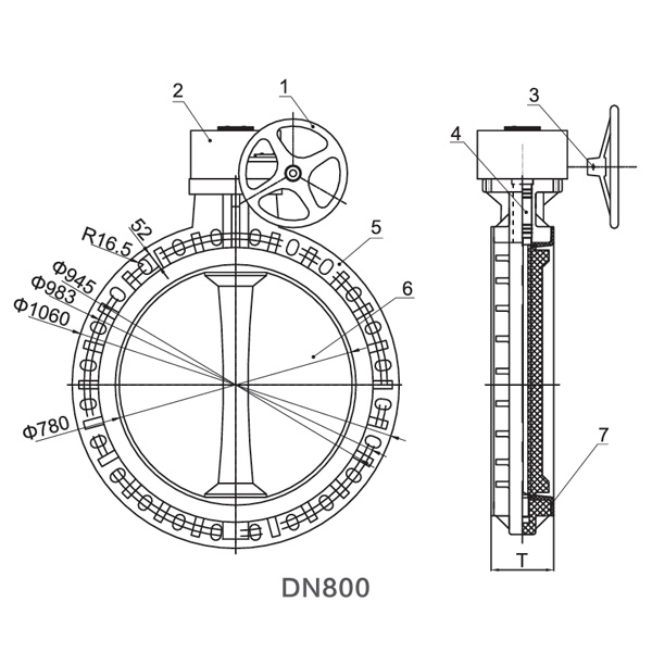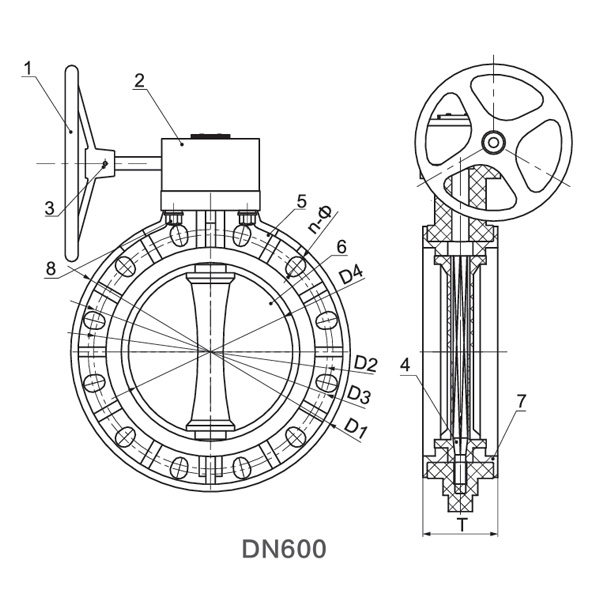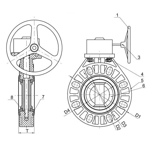 PVDF D371X-10F Snäckväxel vridspjällsventil DN40-1000 1-1/2"-30" ANSI Standard