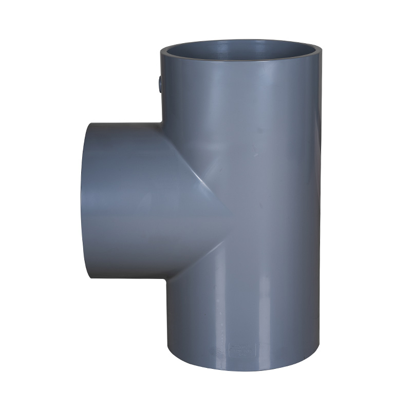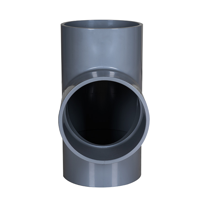 Fabrikspris Ljusgrå PVC-C Tee Likformig Plaströrkopplingar DN15-DN600 Vattenrörskopplingar Raka T-kopplingar för dränering och sanitet