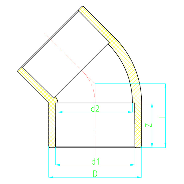 PVC-C 45° Armbåge DN15-600 GB Standard