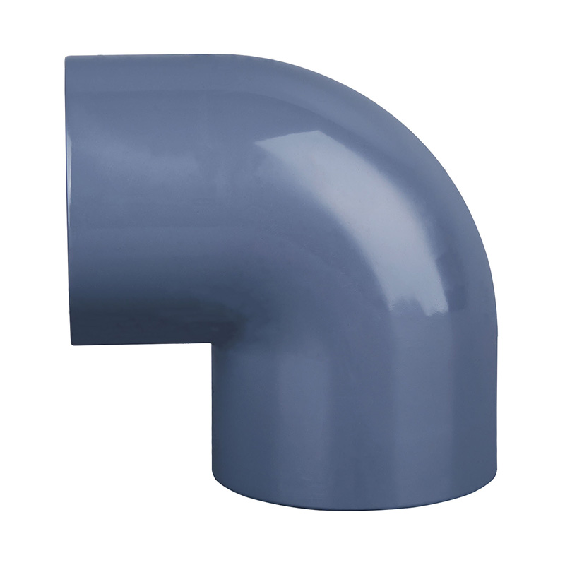 Högkvalitativ ljusgrå PVC-C 90° armbågsformad DN15-DN600 1,0-1,6 MPa arbetstrycksrördelar i plast för kemi- och vattenindustrin