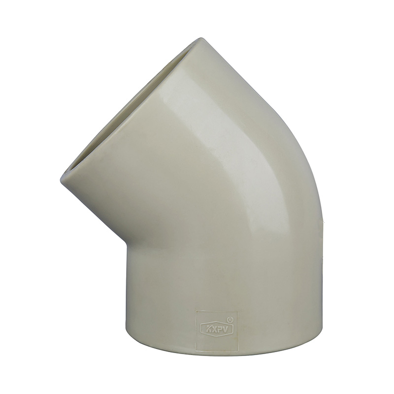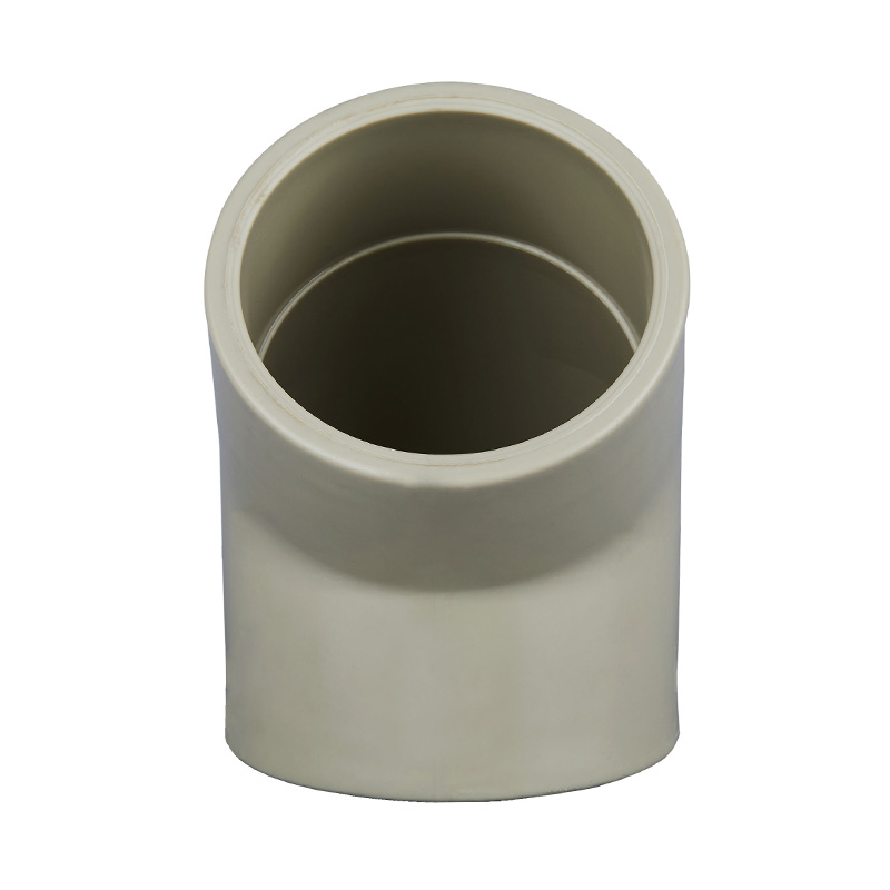 Superhållbar jordgul smälthylsa 45° lika form armbåge Professionell standardmått DN15-100 Plaströrkopplingar PPH 45° armbåge