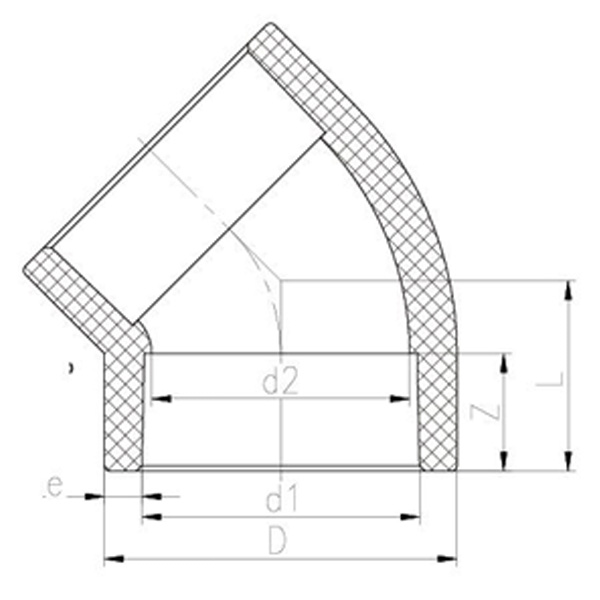 PPH Hot Melt Socket 45° Armbåge DN15-100 GB Standard