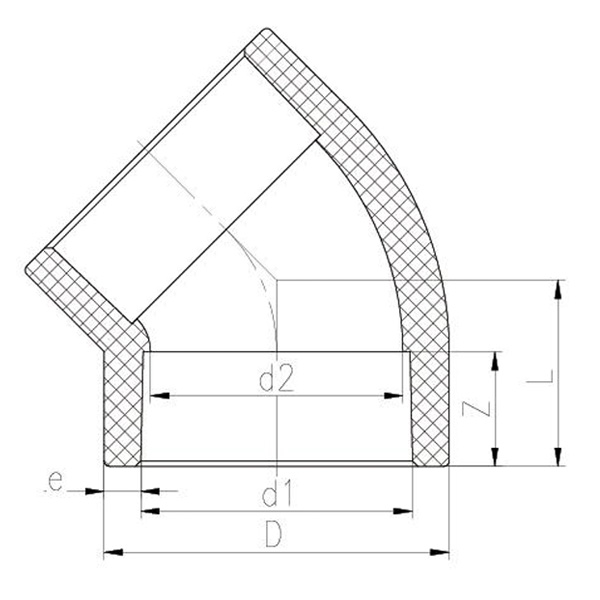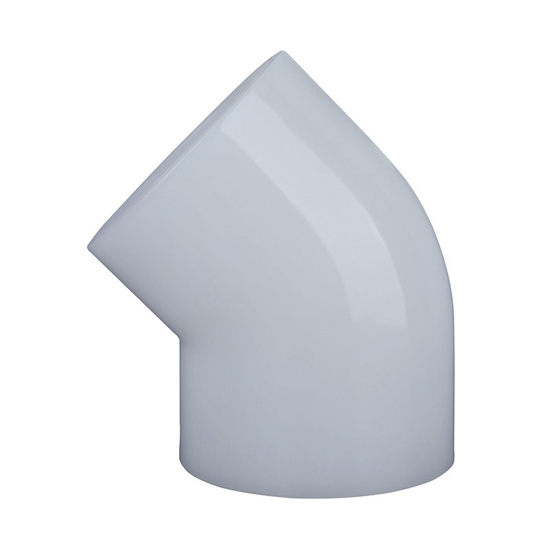 Superhållbar vit PVDF 45° armbåge Likformig Professionell standardmått DN15-DN100 Plaströrkopplingar PVDF Formula 45° armbåge