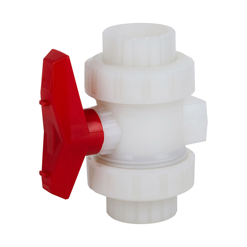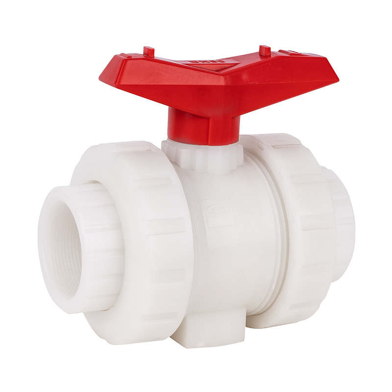 Vit 20 mm-110 mm hög temperatur superhållbar Standard PVDF Double Union Socket Kulventil 1,0-1,6Mpa ISO STD Standard industri plastventil