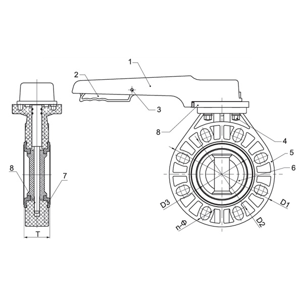 PVC-U D71X-10U Handtag vridspjällsventil DN40-200 1-1/2"-8" ANSI Standard