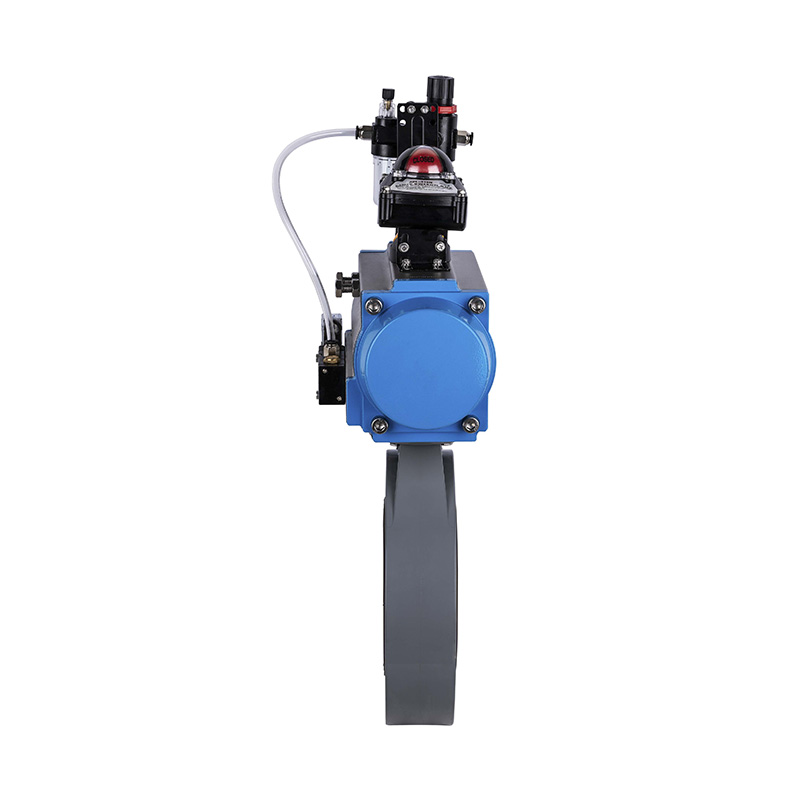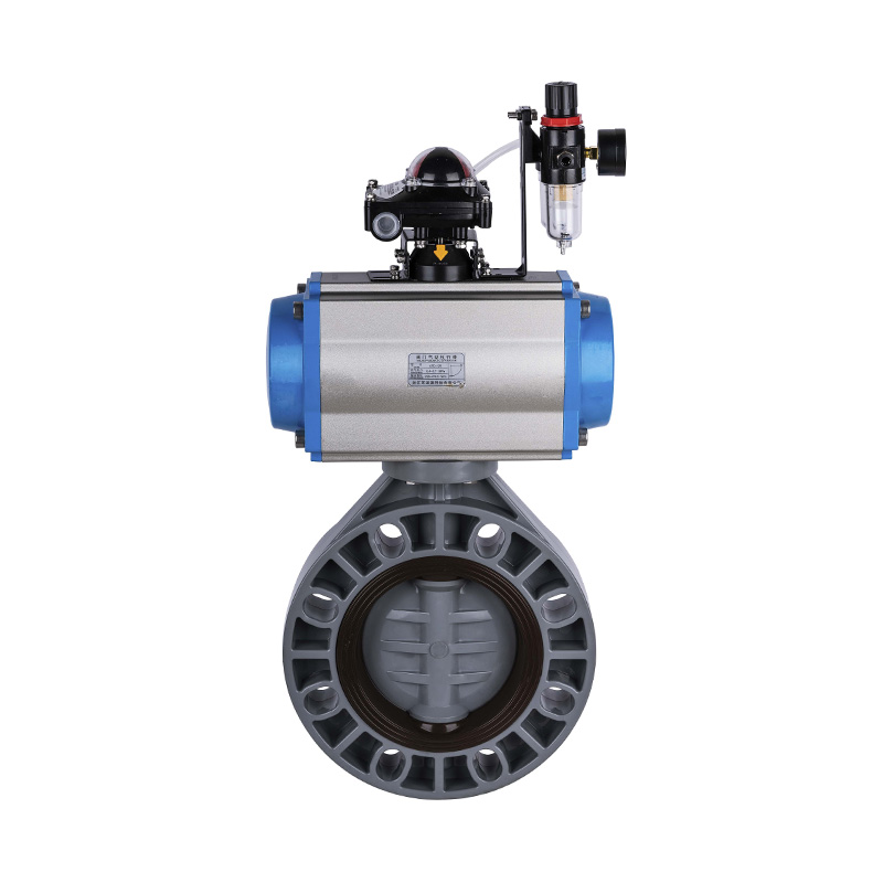 PVC-C pneumatisk automatisk vridspjällsventil, centrumtätning, mjuk tätning, DN32-1000, industri- och hushållsplastspjällventil