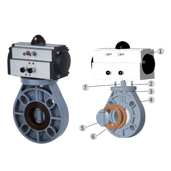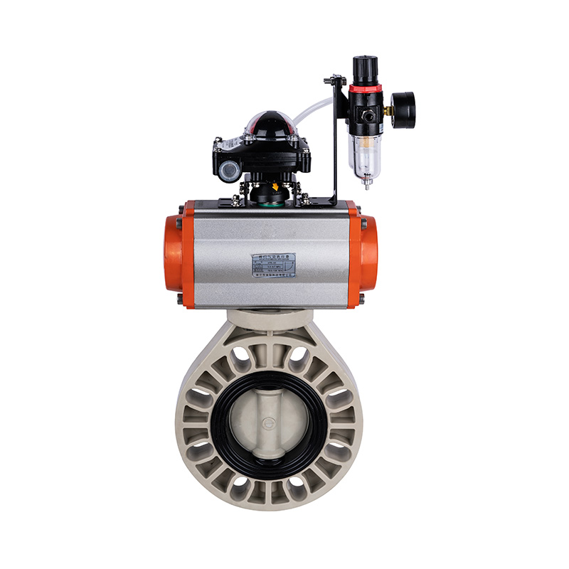 PPH pneumatisk automatisk vridspjällsventil, centrumtätning mjuk tätning, DN40-1000, industri- och hushållsplastventil, JIS Standard