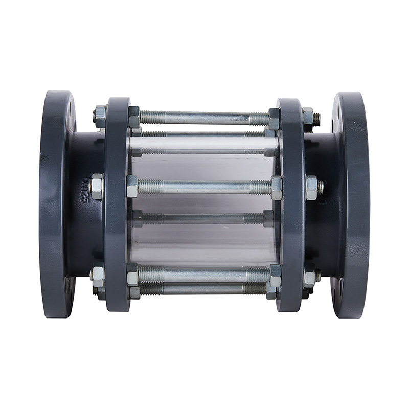 Anpassad mörkgrå tubformad PVC-U siktglas, stabilt runt borosilikat observationsflödesindikator flytande olja fläns plast synglas