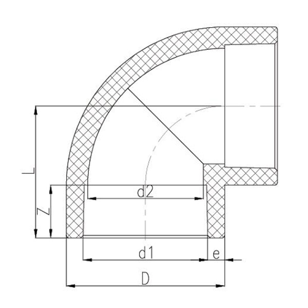 PPH Hot Melt Socket 90° Armbåge DN15-100 GB Standard
