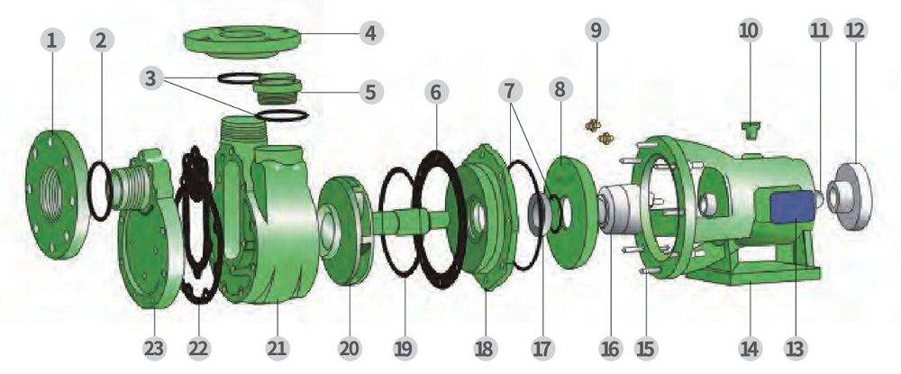 Vår fabrik är specialiserad på att tillverka korrosionsbeständiga centrifugal- och självsugande pumpar av helt plast i två material - PVDF och FRPP - i fyra serier (FV, FP, FVZ, FPZ). PVDF-pumpar är lämpliga för att hantera starka syror, kraftfulla oxidanter, halogener, aromatiska kolväten, alifatiska föreningar och klorerade lösningsmedel, med ett driftstemperaturområde på -40°C till 140°C. FRPP-pumpar är idealiska för starka alkalier såväl som allmänna syror, baser, salter och deras derivat, med ett driftstemperaturområde på -40°C till 90°C. Pumparna drivs vanligtvis av energieffektiva motorer av Y-typ. Explosionssäkra motorer kan tillhandahållas på begäran.