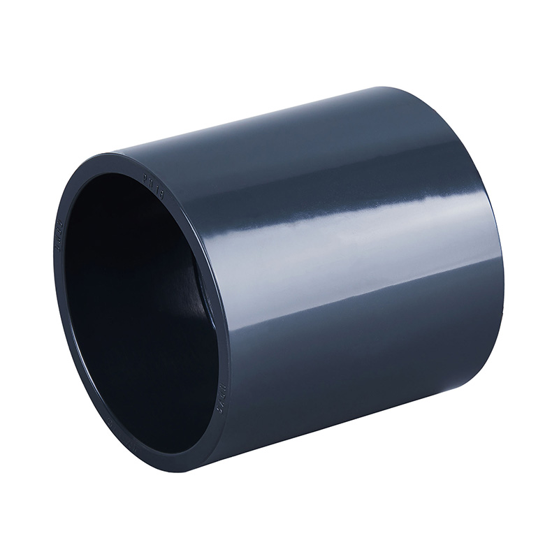 Mörkgrå PVC-U rakkoppling, DN15-DN600, anpassad 10 tum, 12 tum, industriell plaströrkoppling för kemikalier och vattenförsörjning, ANSI SCH80 standard