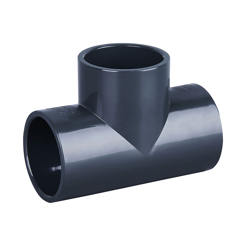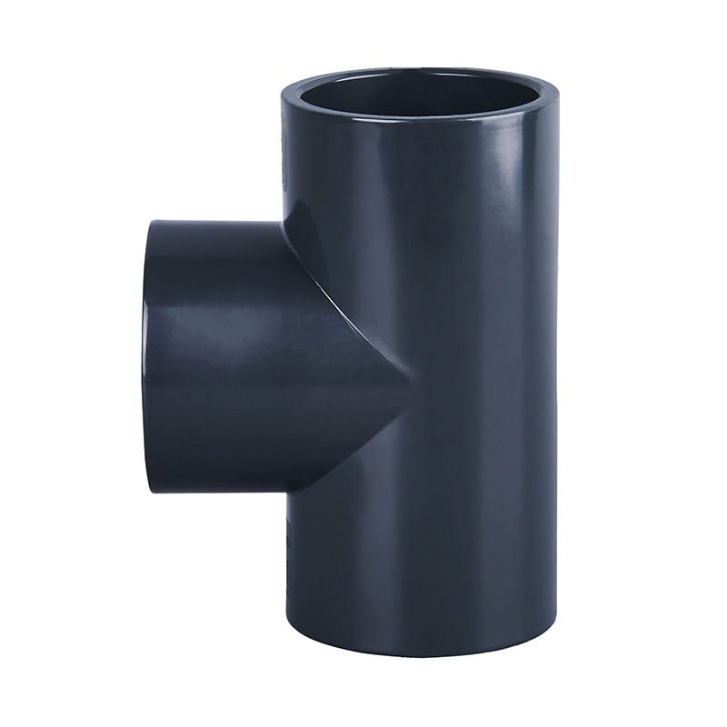 Fabrikspris Mörkgrå PVC-U Tee Likformig plaströrkoppling DN15-DN600 Vattenrörskoppling Rak T-koppling för dränering och sanitet