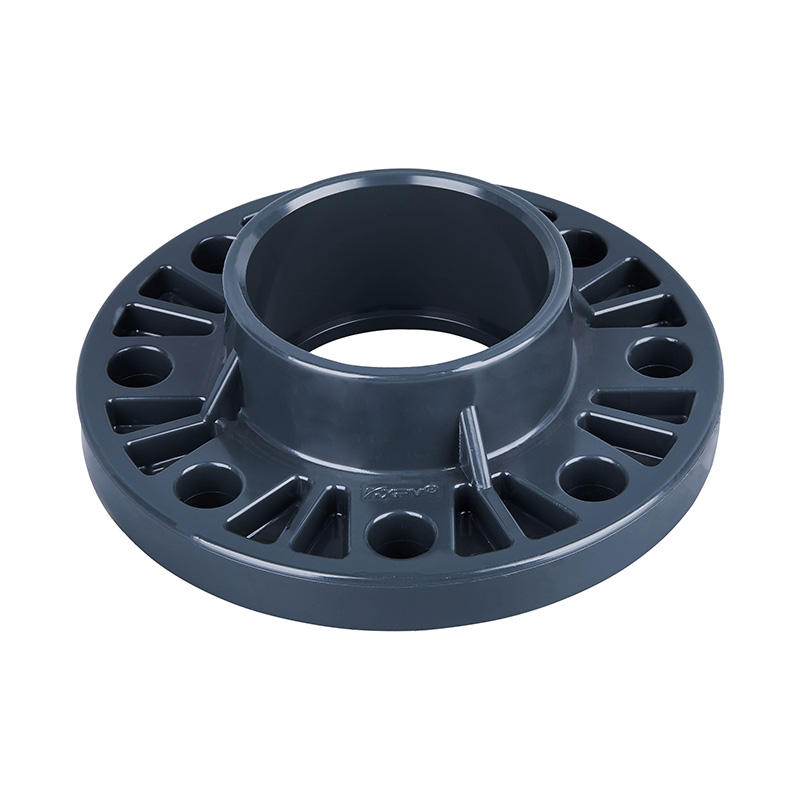 Nyligen vanligt använda mörkgrå PVC-U universalhylsa med flänsad rörkoppling, DN15-DN600, för kemiska och sanitära applikationer, ANSI SCH80 Standard